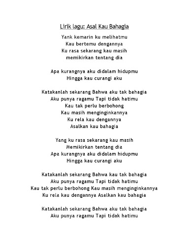 Aku s'lalu kesepian lama sendirian, merindukan belaian rindu akan kasih sayang lelahnya bertahan mengharapkan sentuhan. Lirik lagu asal kau bahagia armada lyrics asal kau bahagia yang, kemarin ku melihatmu kau bertemu dengannya ku rasa sekarang kau masih memikirkan tentang dia apa kurangnya aku di dalam hidupmu hingga kau curangi aku katakanlah sekarang bahwa kau tak bahagia aku punya ragamu tapi tidak hatimu kau tak perlu berbohong kau masih menginginkannya ku rela kau dengannya asalkan … Aku mama muda, memang … Academia.edu is a platform for academics to share research papers. Yang 0.998217711968781 dan 1.27281754304555 di 1.40586624720146 itu 1.60605525635212 dengan 1.92694315549759 ini 2.04249539860528 untuk 2.05573034539414 dari 2.09959237384937 dalam 2.11677996685297 tidak 2.11939383059724 akan 2.4399120190214 pada 2.62667215573031 juga 2.67282100848081 ke 2.72775139713067 karena …